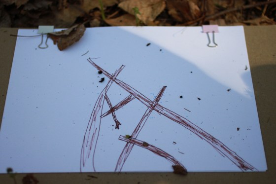 Suddenly, there was a rush to the door and out they went – and I followed right behind them with my camera! <we have a plastic bag that hangs on a tree with markers and clip boards>
