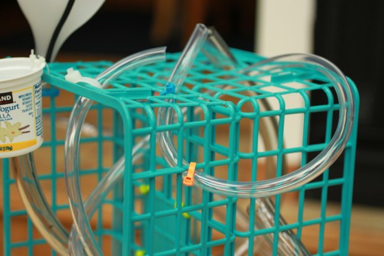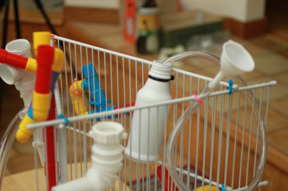 • Anything that you can use to weave plastic tubes, and secure water traveling objects (i.e.: grid shelves, plastic baskets that have holes all around them, or closet shelves (see pictures below)